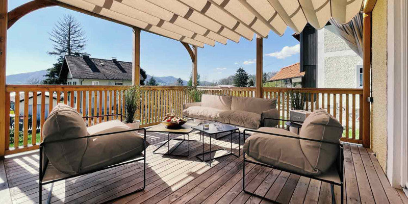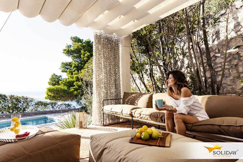 Bruk den ute hele året! Den høye vannsøylen tilbeskyttelsesdekslene og de vannavstøtende egenskapene til utendørsstoffene gjør at regnvann ganske enkelt ruller av det belagte stoffet. Funksjonalitet og komfort i ett.