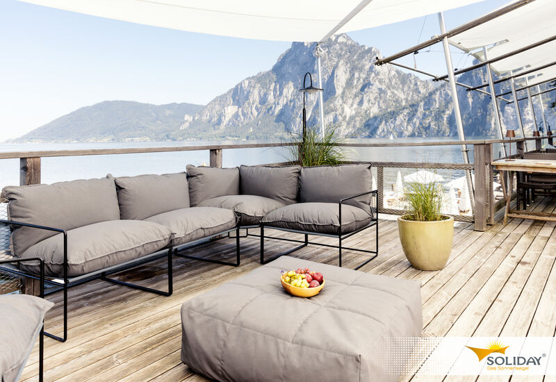 Konstruksjonen er laget av pulverlakkert helstål eller høykvalitets rustfrie stål, og danner grunnlaget for denne modulære utesalongen. Dette sikrer høy stabilitet og ekstrem lang holdbarhet for utendørsmøblene.
